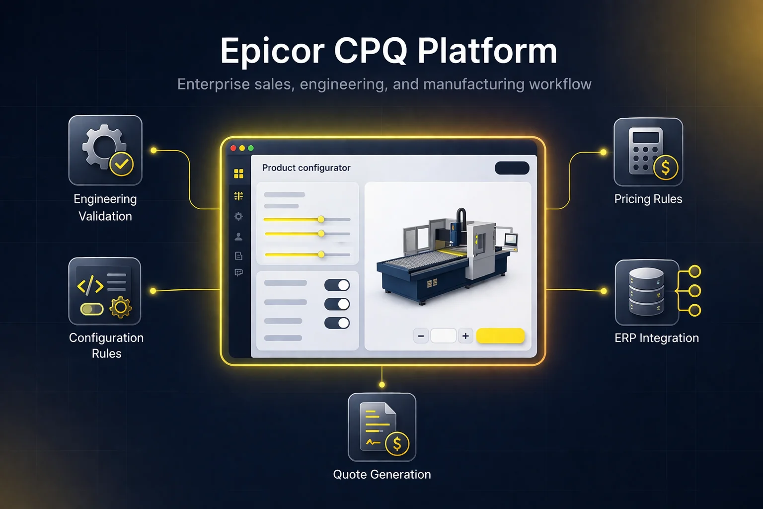 Epicor CPQ (formerly KBMax) is an enterprise-grade Configure, Price, Quote platform backed by one of the largest ERP companies in the world. It's recognized as a Leader in the Nucleus Research CPQ Value Matrix and named a Major Player in the IDC MarketScape. This post examines what Epicor CPQ does well, where its enterprise-scale approach creates constraints, and what to consider if you need a leaner path from customer configuration to factory floor.