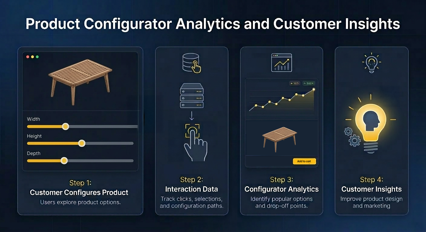 Every time a customer interacts with your product configurator, they tell you something. Which material they selected first. How long they spent comparing finishes. The exact moment they abandoned the configuration. This behavioural data is a goldmine for product development, pricing strategy, and marketing — yet most businesses leave it untapped.