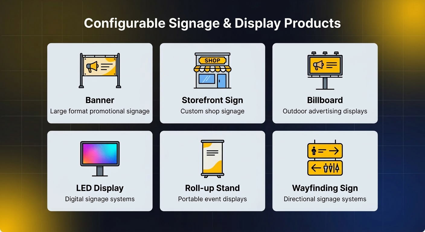 Every business needs signs. From the channel letters above a retail storefront to the wayfinding system inside a hospital, signage is a universal product category with near-infinite customisation requirements. Yet the industry still operates largely through manual quoting processes: customers describe what they want, sales reps create mockups, revisions go back and forth, and only then does production begin. Product configurators are changing this — letting customers design their signs in real time, see photorealistic 3D previews, and receive instant pricing.
