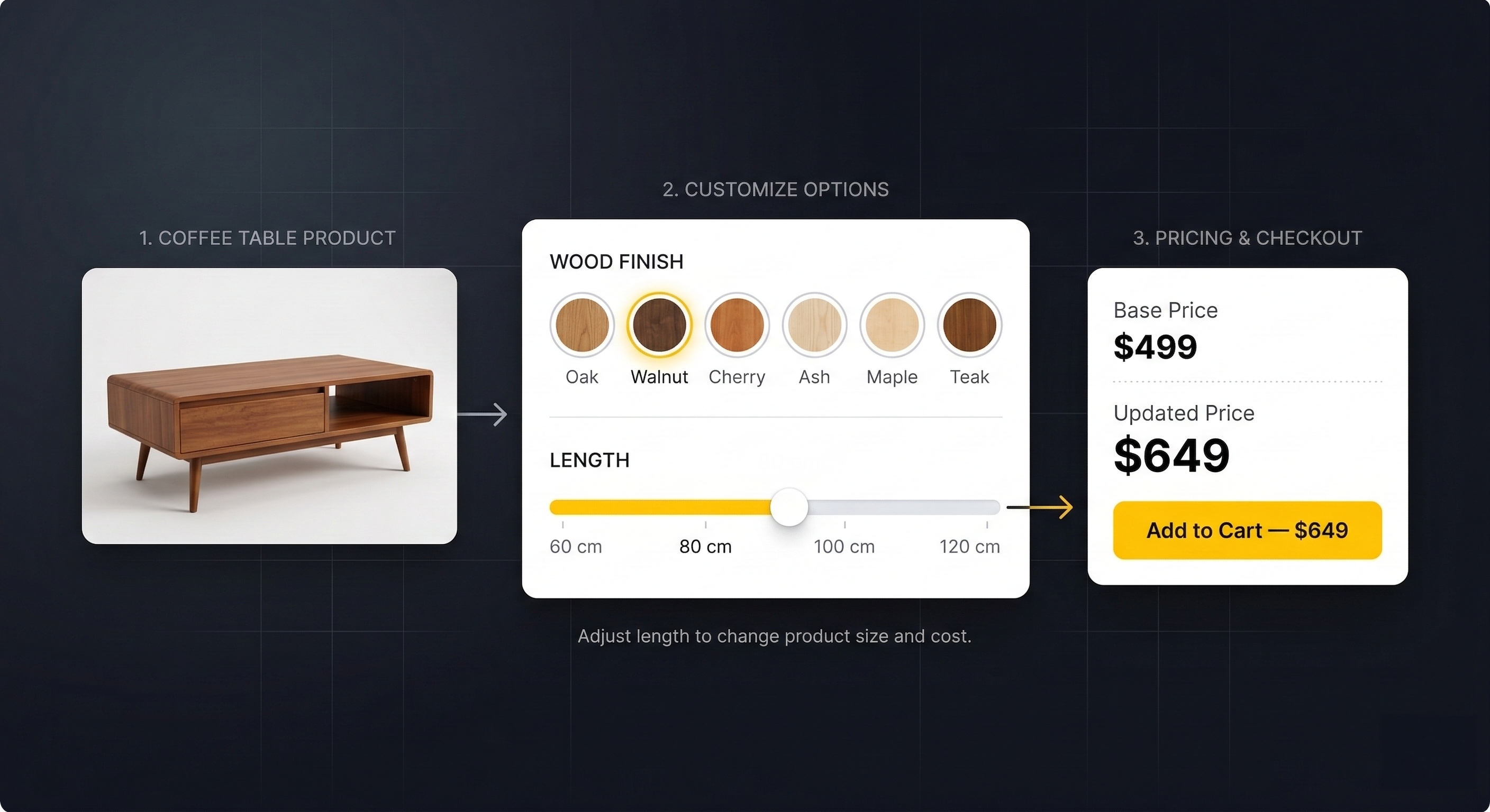 A customer lands on your website, opens your product configurator, and starts building something custom. They pick a material, adjust the dimensions, add a premium finish. Every change they make raises the same silent question: how much does this cost?