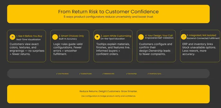 In short, configurators replace guesswork with precision, a direct antidote to returns caused by unmet expectations.